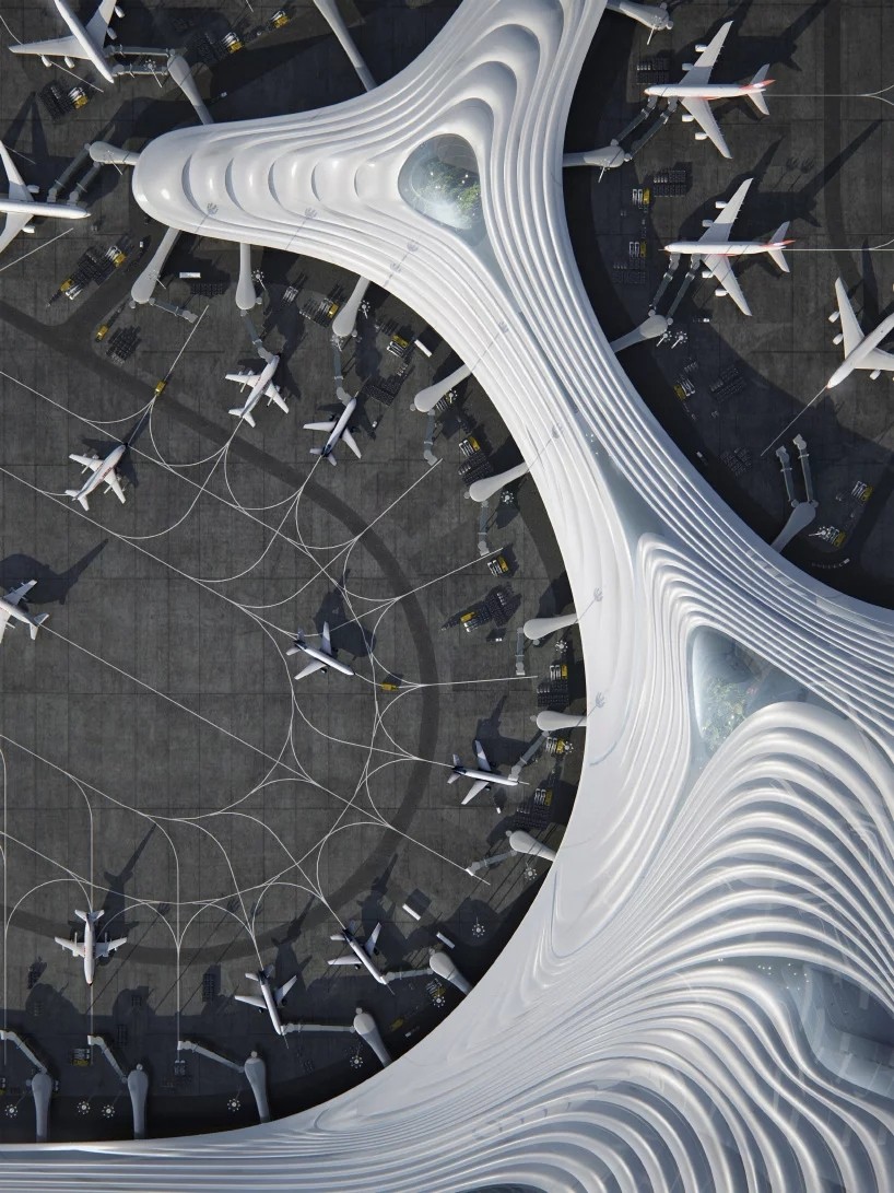 由馬巖松帶領的MAD建筑事務所公布了哈爾濱機場T3航站樓方案設計。回應中國北方平原遼闊起伏,冰天雪地的地理環境特點,MAD設計的T3航站樓就像是一片飄落在東北大地的雪花,晶瑩閃爍,與哈爾濱“冰城”的城市特征貼切呼應。同時,她又像是超現實的星際太空基地,極具未來感。
